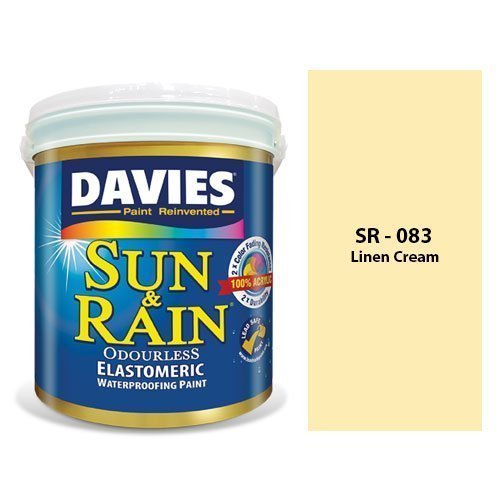 Davies Sun & Rain Linen Cream combines advanced UV blockers and anti-fungal agents in a warm cream shade to guard exterior walls against sun damage, moisture, and mildew. Its washable, low-sheen finish adheres to masonry, stucco, and concrete, delivering long-lasting elegance and protection for façades, trim, and accent walls.