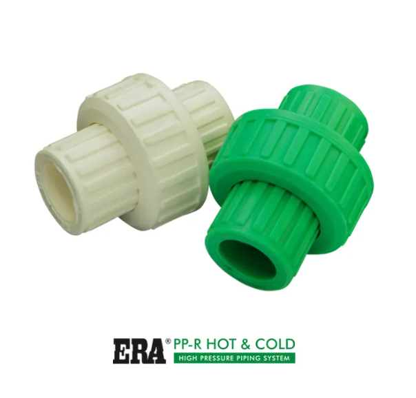 ERA PPR Union features two PPR heat-fusion sockets with an integrated, reusable threaded coupling, enabling tool-free joining and separation of pipe segments. Manufactured from corrosion-resistant polypropylene copolymer, it combines permanent fusion on the sockets with a mechanical joint at the union. Perfect for connecting pumps, valves, and equipment requiring periodic removal in plumbing and HVAC systems.