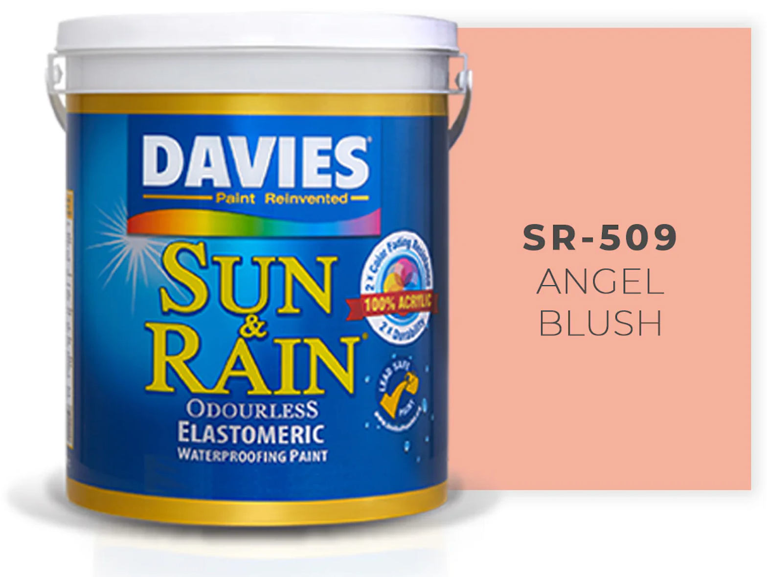 Davies Sun & Rain Angel Blush blends high-grade acrylic resins, UV blockers, and anti-fungal additives in a soft pastel-pink tone. Its low-sheen, easy-clean finish adheres to masonry and stucco, delivering a refined, timeless look with durable protection against sun, rain, and mold.