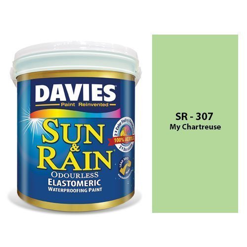 Davies Sun & Rain My Chartreuse combines UV blockers and anti-fungal agents in an eye-popping chartreuse shade to safeguard exterior surfaces from sun, rain, and mold. Its low-sheen, washable formula adheres firmly to masonry and stucco, ensuring long-term color retention and easy cleaning for dynamic accent walls.