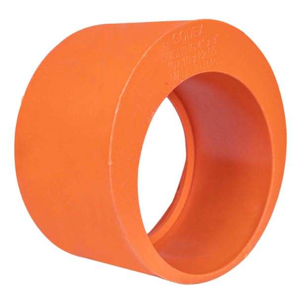 Sanitary PVC reducer busting inserts into a larger pipe socket and accepts a smaller-diameter pipe, creating a tight, reliable seal without extra adapters. Made from durable, chemical-resistant PVC, it supports solvent-weld or rubber-ring installation. Perfect for adapting Series 600 and 1000 drainage and vent systems, this fitting streamlines size changes in residential and commercial plumbing.